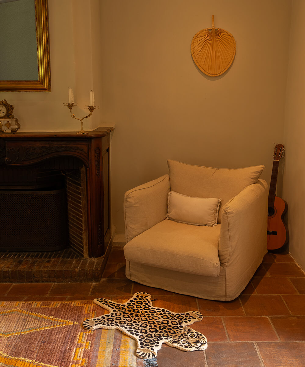 Le tapis Loony Leopard Small fait partie de notre propre collection Tapis Amis ; une gamme décalée d’adorables créatures du règne animal qui vous donneront le sourire. Ce tapis a été fabriqué à la main, en Inde. Il est composé à 100 % de laine et doublé en coton.